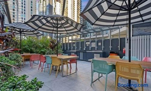 Your family will be close to everything when you stay at this fully renovated CBD property. It's in a fantastic building with pool, spa, sauna, gym - everything you need when you're away on holidays! Just a hop, skip and a jump away from the new STAR Casino, Cafes, bars and restaurants - you simply cannot find a better valued property that enjoys a distant river outlook from the 28th floor! Paid parking is all over the place in the immediate vicinity, so your car will also be safe.